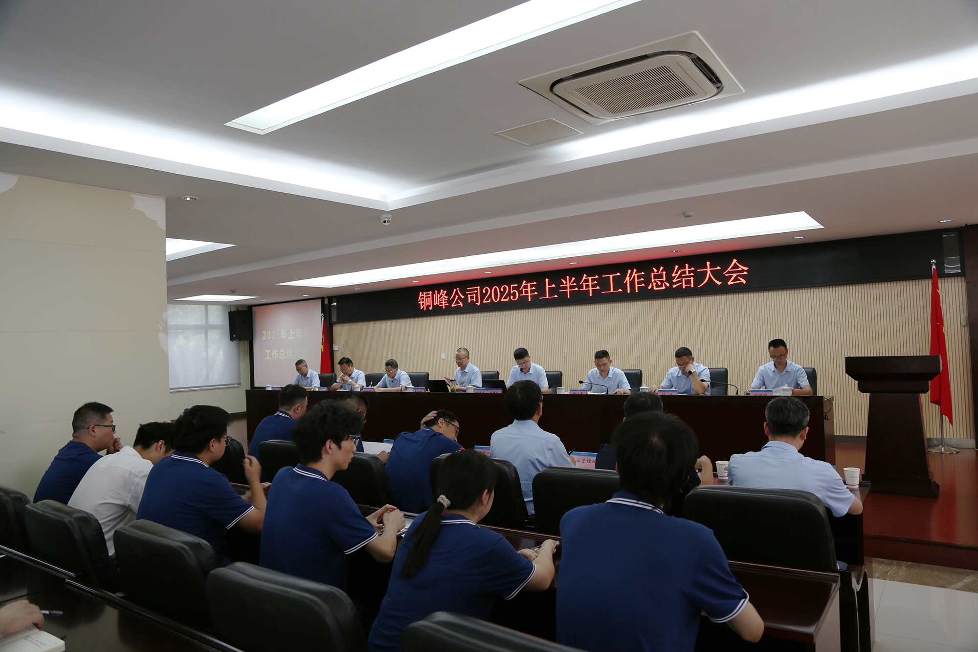 8月8日下午,公司在辦公樓二樓職教室隆重召開2025年上半年工作總結(jié)大會。公司黨政領(lǐng)導(dǎo)班子成員、各生產(chǎn)經(jīng)營單位車間主任和職能部門主管級以上人員、部分職工代表和新進(jìn)大學(xué)生代表等參加會議。會議認(rèn)真復(fù)盤上半年運營成果,深入分析當(dāng)前經(jīng)營形勢,精心謀劃下半年重點工作。公司黨委書記、董事長黃明強出席會議并作總結(jié)講話,對公司上半年工作進(jìn)行總體分析,對下半年工作提出要求??偨?jīng)理鮑俊華主持會議,并對公司各單位和部門的具體工作進(jìn)行點評。公司各生產(chǎn)單位和相關(guān)職能部門分別匯報了上半年主要工作及下半年工作計劃。